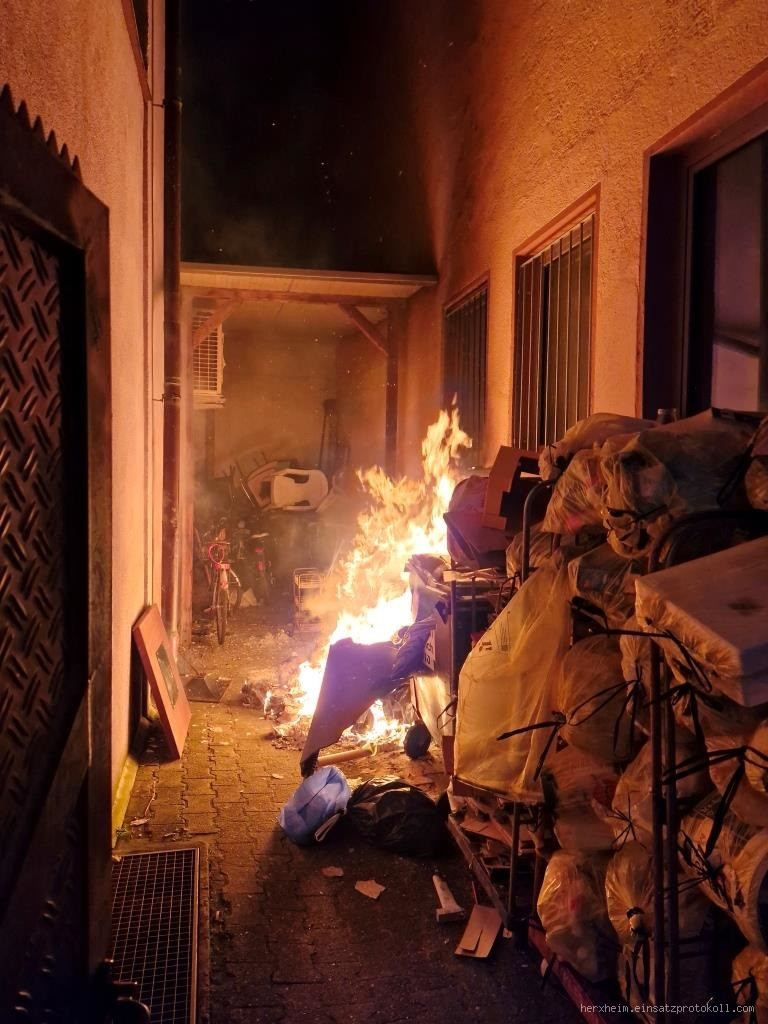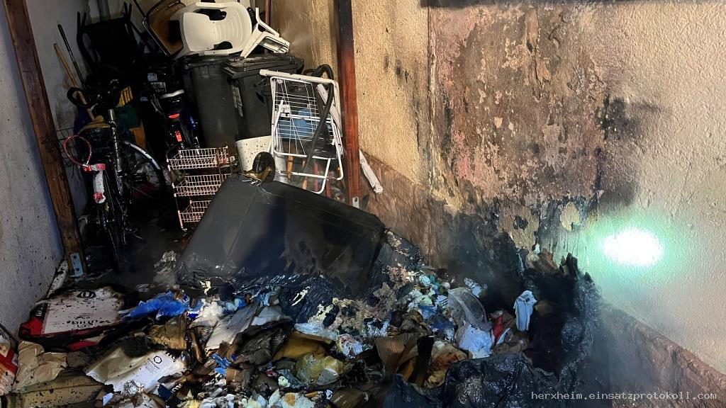 Während den Einsätzen in Rohrbach ind Insheim wurde die Feuerwehr Herxheim über einen Müllcontainerbrand in der Oberen Hauptstraße in Herxheim von der Leitstelle Landau informiert.