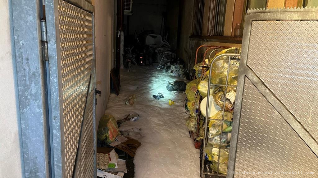Vor Ort brannten Müllcontainer zwischen zwei Gebäuden. Diese wurden mit Wasser abgelöscht und anschließend ein Schaumteppich über die betroffene Fläche gelegt.