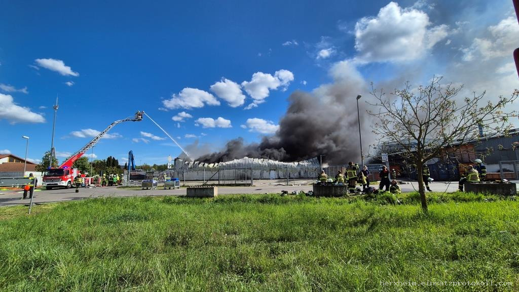 Industriegebäudebrand - Unterstützung mit GW-A, Lustadt