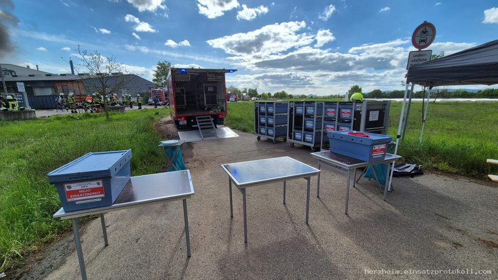 Der Gerätewagen Atemschutz wurde zur Unterstützung der beteiligten Feuerwehren nach Lustadt zu einem Industriegebäudebrand alarmiert. Dort brannte die Lagerhalle eines Recyclingunternehmens. Der AB-AS aus Rülzheim war nicht einsatzbereit.